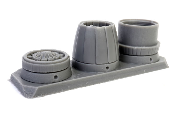 Designed for the Revell kit of this popular subject, these six resin parts, three for each exhaust will replace the kit parts and are far more delicately detailed than their plastic equivalents.