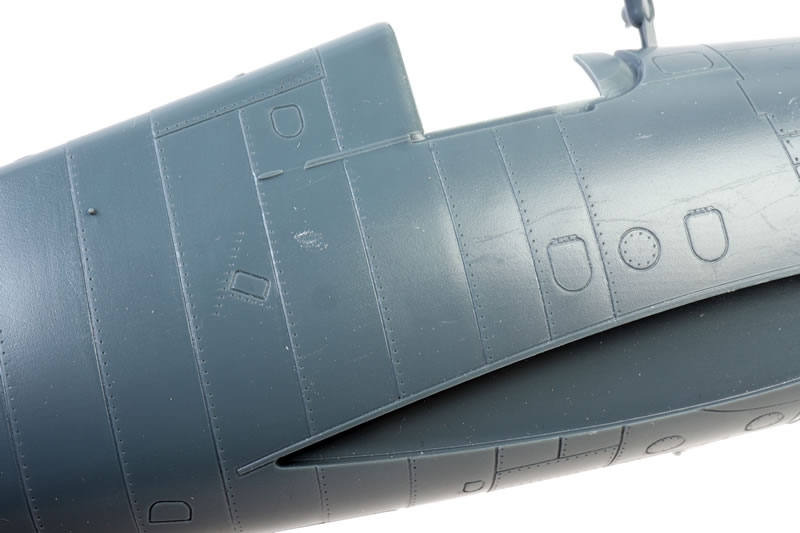 Even after more than a decade since its original release, surface textures on the Hellcat stand up well in comparion to Eduard's very high standards today. In addition to crisp, finely recessed panel lines and selected rows of rivets, the Hellcat fuselage employs a subtle lapped panel effect. This really works well.