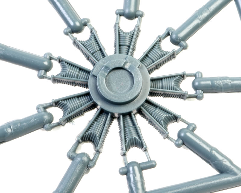This boxing offers a bonus four resin parts for the main wheels. Hubs are separate parts. Casting quality is perfect and detail is superior to the kit's plastic wheels.