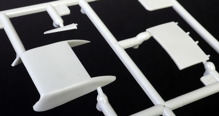 I like the fabric texture on the control surfaces, which is raised and appropriately restrained. All control surfaces, including the leading edge slats and even the front radiator ramps, are separate. The rudder, elevators and ailerons are hinged and may be built to be moveable when the model is complete.