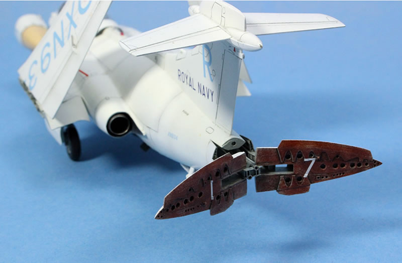 I chose to model the Buccaneer as one of the aircraft performing carrier deck trials aboard HMS Ark Royal in 1963. That meant an overall anti-flash white scheme, and let me tell you that white is my least favourite colour to paint. The anti-flash white is Testors RLM21 semi-gloss white, and other paints used are primarily Mr. Hobby aqueous colours. Post shading was done with Mr. Hobby Smoke Grey.