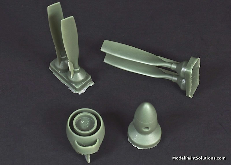 The four propellor blades are well-molded with trailing edges that are thin and scale-appropriate. The prominent exhaust is also appropriately thin and has an end piece that caps the open end of exhaust providing accurate detail should someone decide to peak inside.