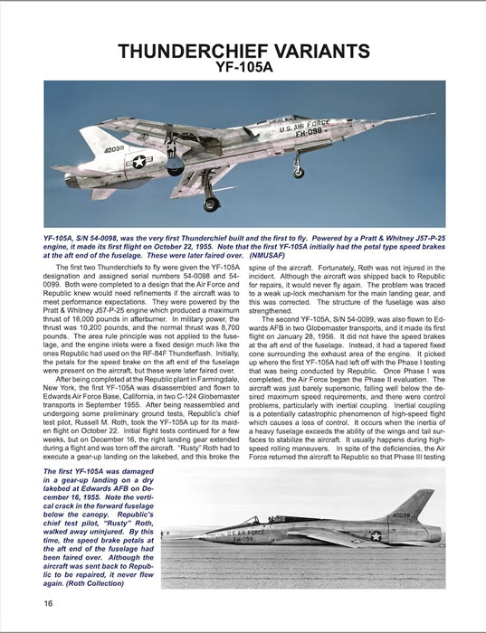 The layout is typical of the D&S series of books. It starts out with the Thunderchief’s history and it is quite comprehensive. It covers from before the F-105 all the way through to the F-105G. One of the things that struck me was that of the 833 Thunderchiefs that were built, 612 were lost in combat or operational causes. That’s 73% of the entire production run. Still the Thud performed well in combat and was loved by those that flew it.