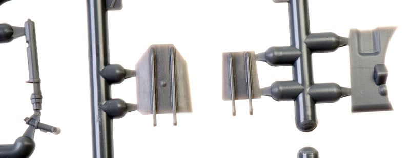 The parts are moulded in dark grey plastic. The texture of the plastic is very smooth and sprue attachments are narrow.