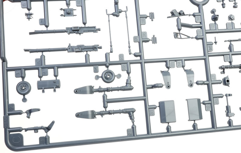 For the gun cowl, we are offered the choice of closed, open or partially open. If the cowl is posed open, a photo-etched frame is used.