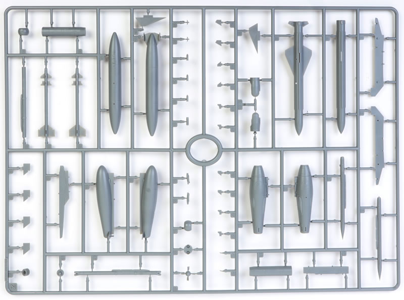 260 light grey injection moulded parts; 14 clear parts; 5 photo-etched metal parts; markings for five aircraft. |