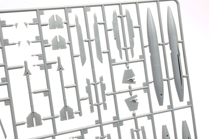 Crisp and fine surface textures; high level of detail in cockpit, wheel wells, engine nozzle, avionics and radar bay; perfectly printed decal sheet; full weapons fit; clear instructions; great value for money. |