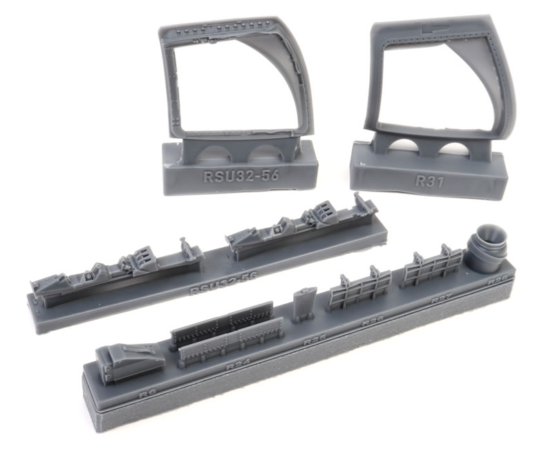 Resin detail parts include lower side consoles, control sticks, throttles, switches, ejection pull handles and more.