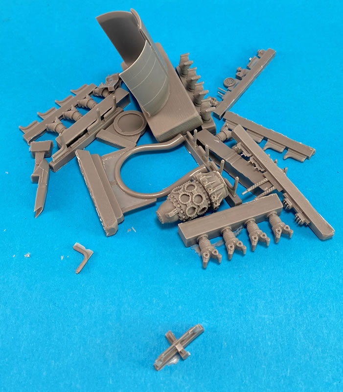 Passing to the resin parts, they are mainly for the engine and engine cowlings (and several small bits for the cockpit)
