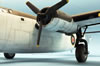 The model shown here is a Liberator GR.Mk.VI used in 1945 with the identification "A" and the construction number 3742. Several modifications were made to this aircraft. The lack of threat from enemy fighter planes at this time allowed the weight-saving removal of the ventral ball mount and the upper forward weapon mount, but investments were made in the installation of an ASV ("Air Sea Vessel") radar system to detect enemy submarines and a weapon load to combat them in the form of bombs, depth charges and torpedoes. Canadian Liberators also deployed the "Leigh Light" searchlights in conjunction with the ASV radar.