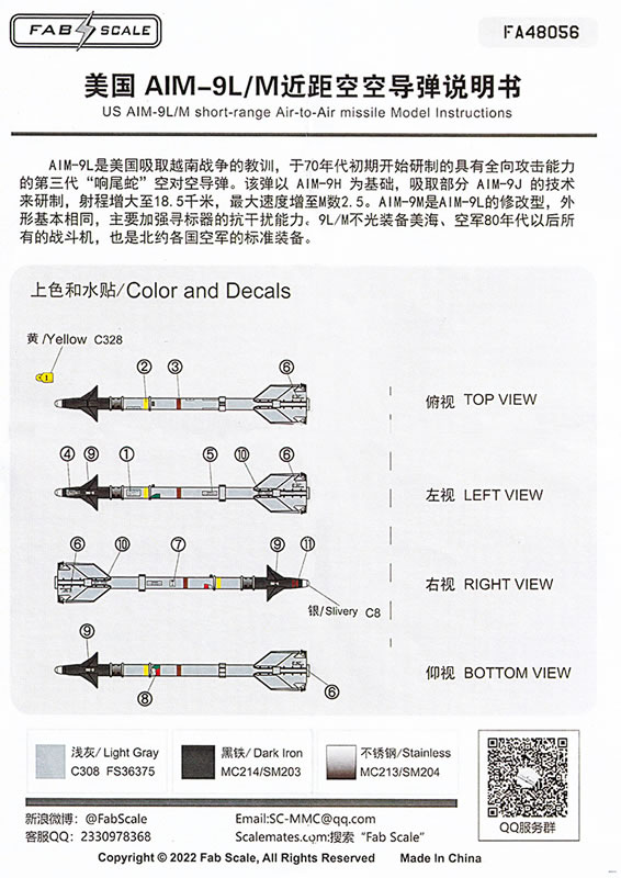 FabScale Item No. Fa48056 - US AIM-9M/L Sidewinder