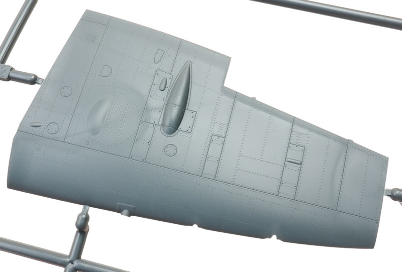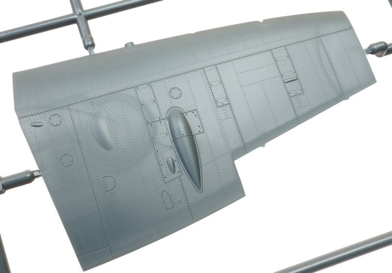 Sprue M is brand new, and differs from the previous Mk.IIb lower wing in the shape of the cannon bulges and the arrangement of several panel lines and hatches.