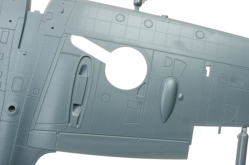 This fuselage accommodates the external armoured glass fitted to the front of the windscreen. This may be seen by the recessed area at the front of the opening for the windscreen. It is also moulded with a slightly raised cover over the armoured fuel tank.