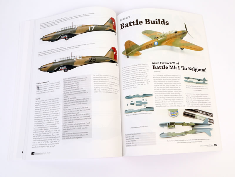 The book’s modelling section is another highlight. Although the Fairey Battle has not enjoyed the same breadth of kit coverage as more famous types, the Author provides a useful assessment of what is available. The build features offer practical notes and highlight both the strengths and weaknesses of currently accessible kits, including the recent Azur-FRROM 1:72 and Trumpeter 1:48 scale offerings.