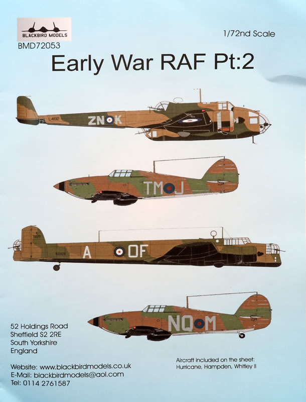 Blackbird Models Item No. BMD72053 - Early War RAF Pt.2