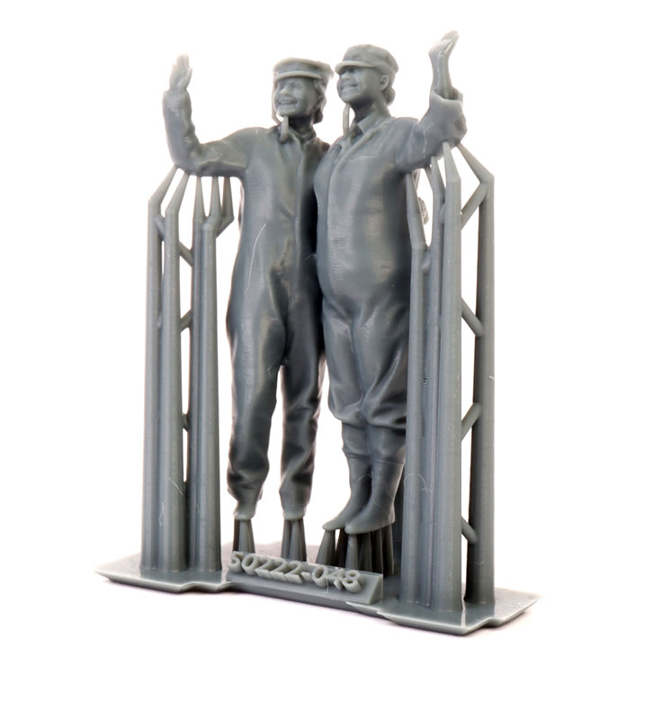 The figures are perfectly 3d printed in grey resin with fine attachment strips / points. No striations or other imperfections can be found on my samples.