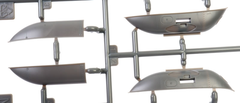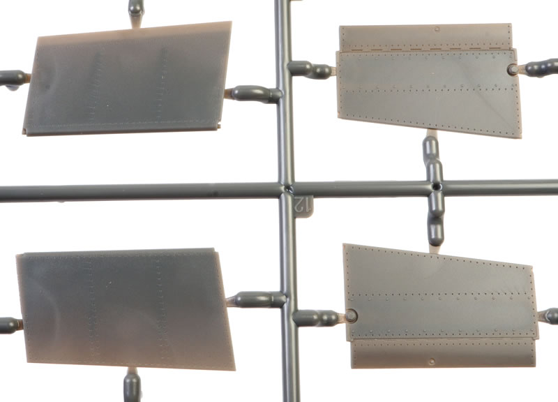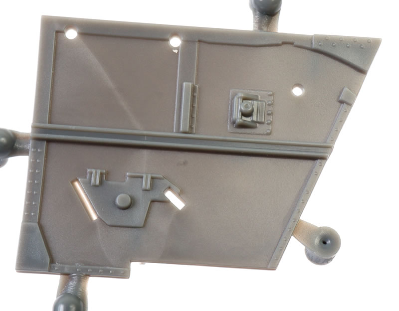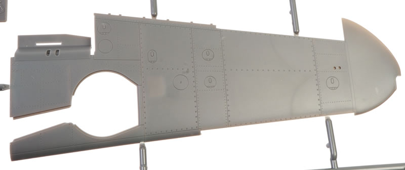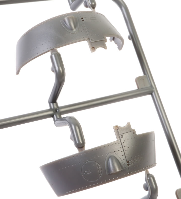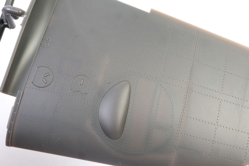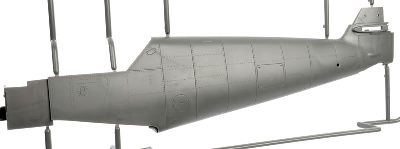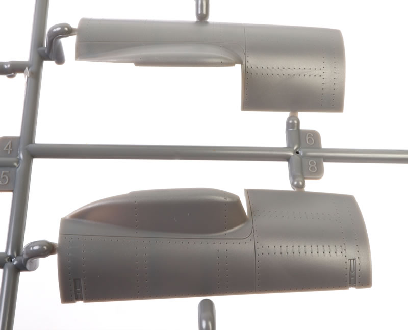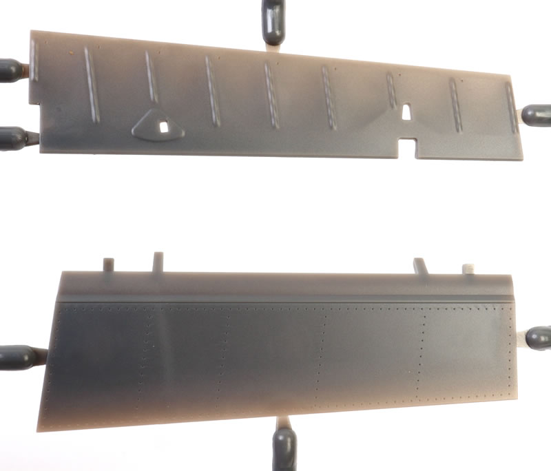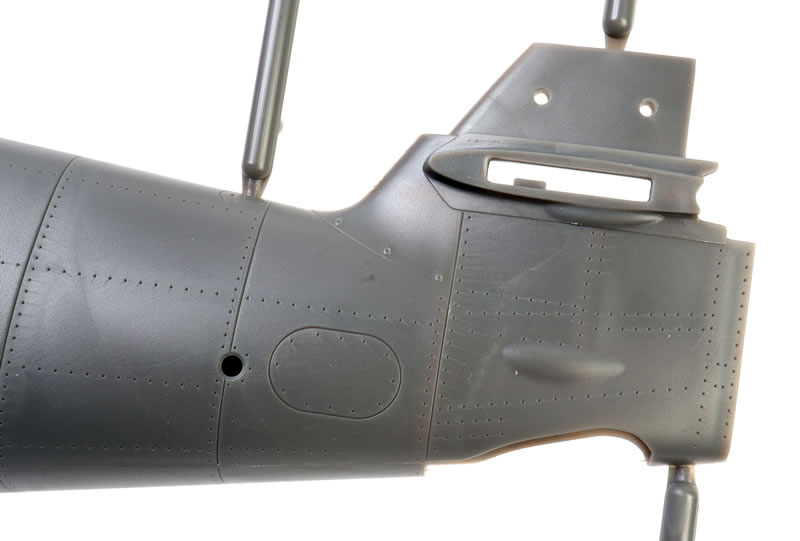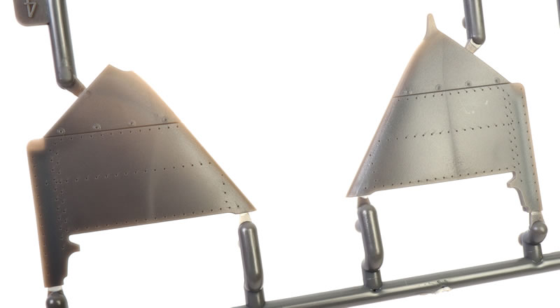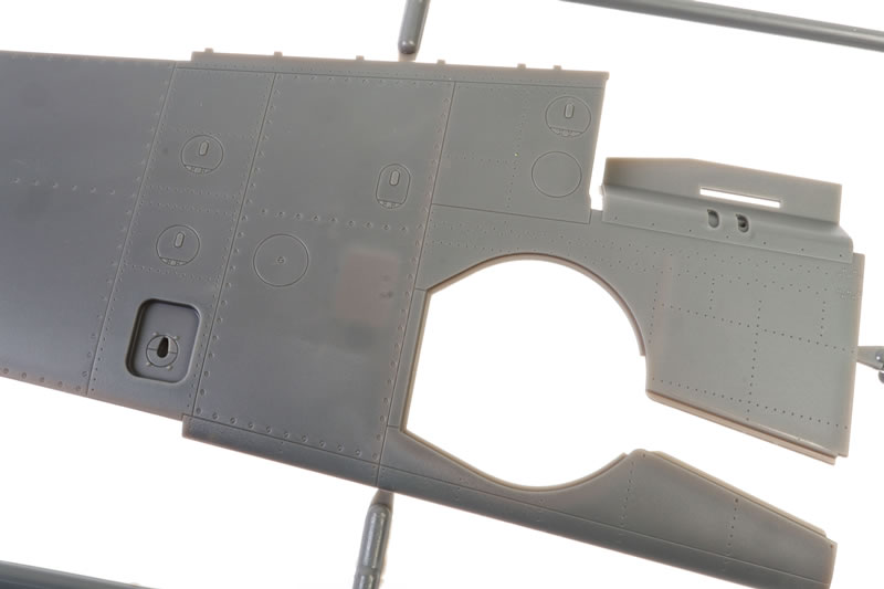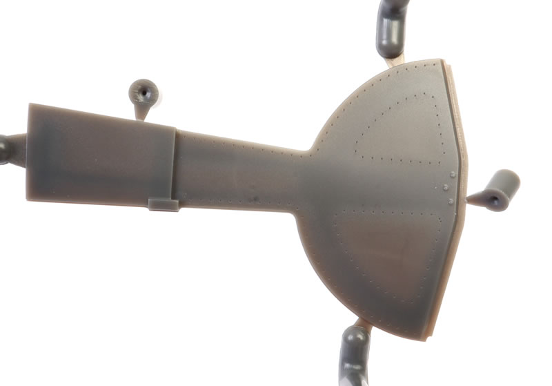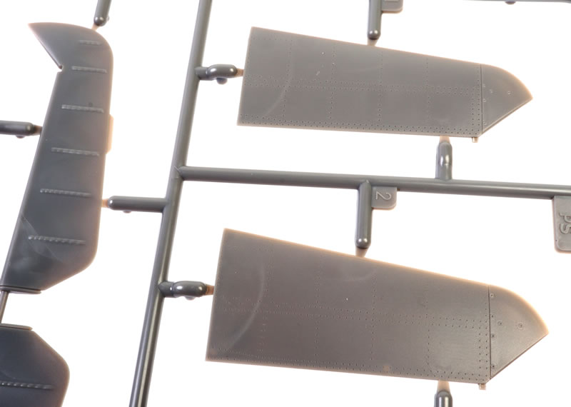 Surface textures are very fine with recessed panel lines and rows of rivets.