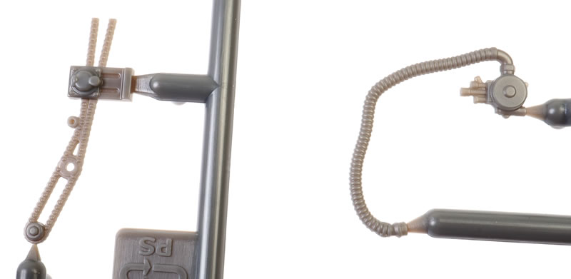 The cockpit sidewalls start out reasonably bare but they will be quickly filled out with layers of detail including the switch box, throttle quadrant, trim wheels and chains, oxygen regulator and hose, supplementary instruments and a clear plastic fuel line on the starboard sidewall.
