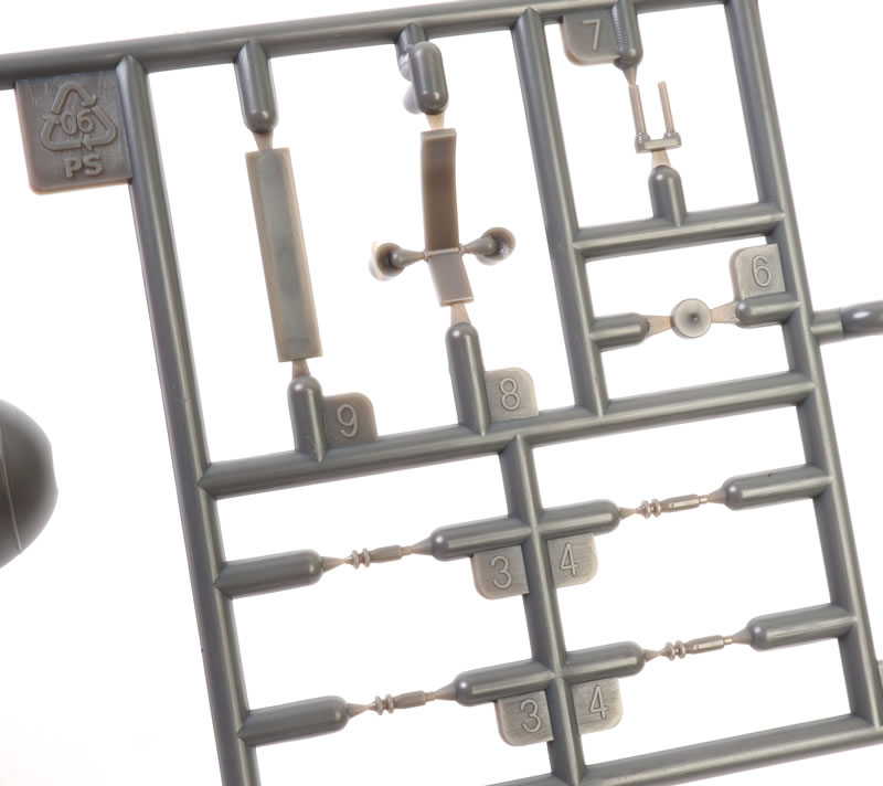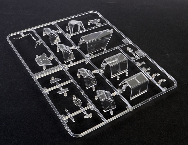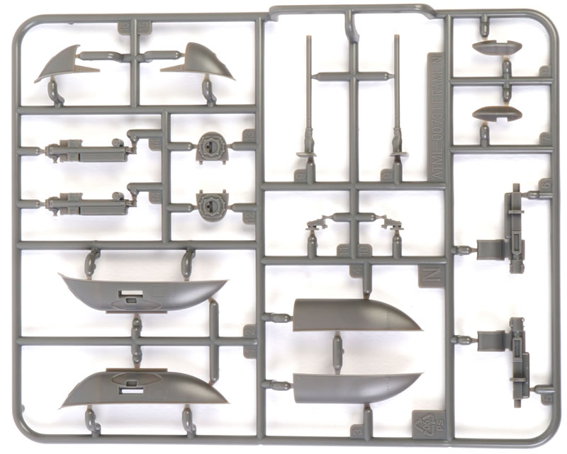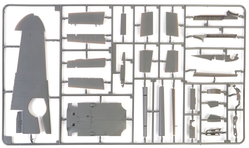 393 medium grey plastic parts, 22 clear parts, self-adhesive die-cut masks, decals for five marking options, glossy colour and markings guide and a 44 page, A4 instruction book. |
