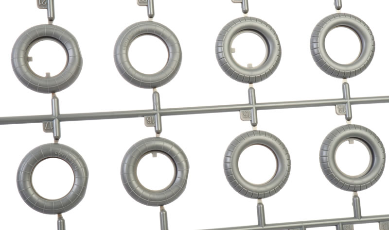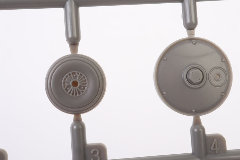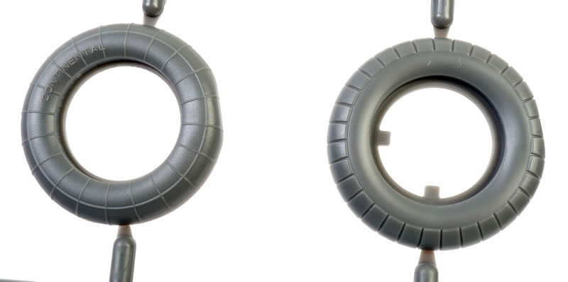 Two tread patterns and hub styles are supplied for the main wheels, both subtly weighted. The tail wheel strut may be built covered or uncovered. The tail gear bay cover may be built in place or open.