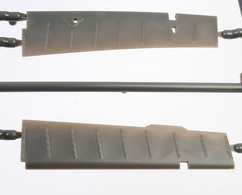 I have heard a few reports of the kit suffering warpage in various places. Checking my kit, I did not initially find any problems, but on closer examination there is some warpage on the top trailing edge of one of the ailerons, Part E4.