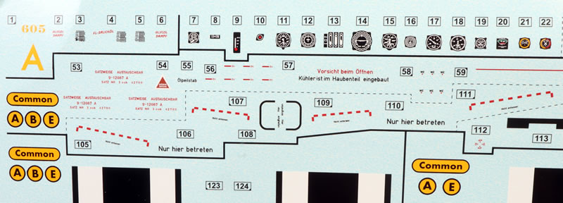 The kit includes a complete DB 605A engine. Please note that the modeller must choose between displaying the engine or finishing the kit with the engine cowlings buttoned up. To quote the Airfix instructions: