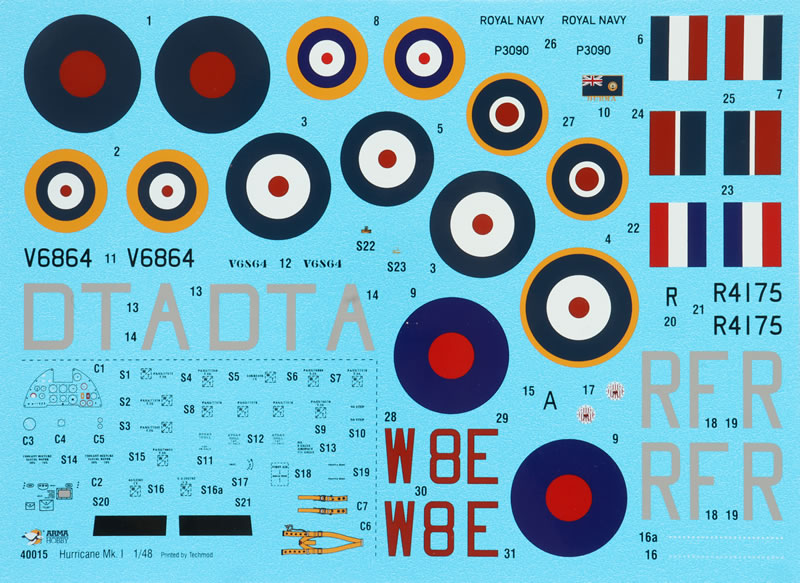 The Techmod-printed decals offer three Battle of Britain-era aircraft plus one war-weary example in Royal Navy service: