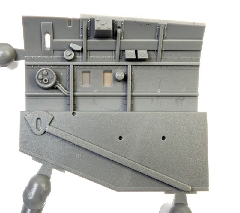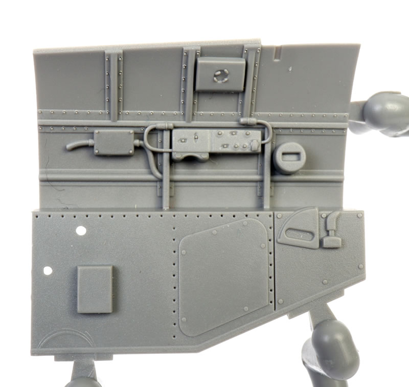 Moulding quality is excellent throughout. Surface textures feature crisply recessed panel lines and fine rows of both raised and recessed rivets. Some of the recessed fasteners are slightly more pronounced, and my studio lighting tends to exaggerate them in close-up photos, but in person—and at normal viewing distances—they look very convincing.
