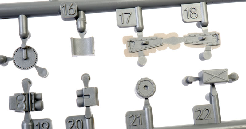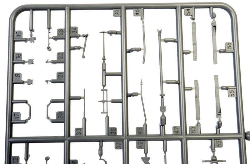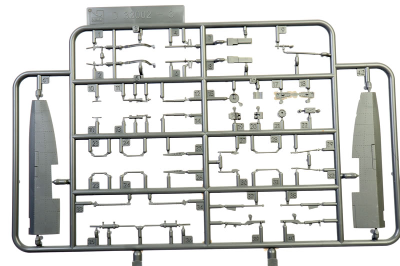 328 grey plastic parts on eleven sprues; ten clear plastic parts; 117 photo-etched parts on one colour and one brass fret; seven marking options on a large, glossy Cartograf decal sheet. |