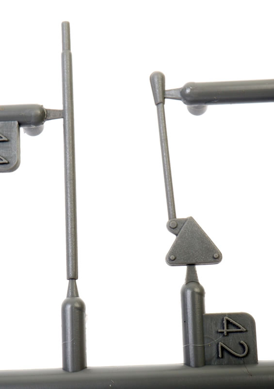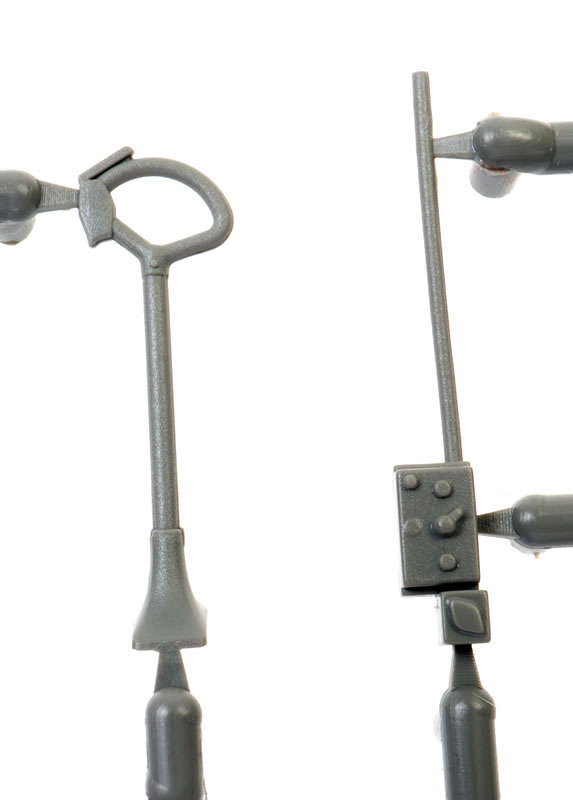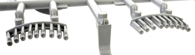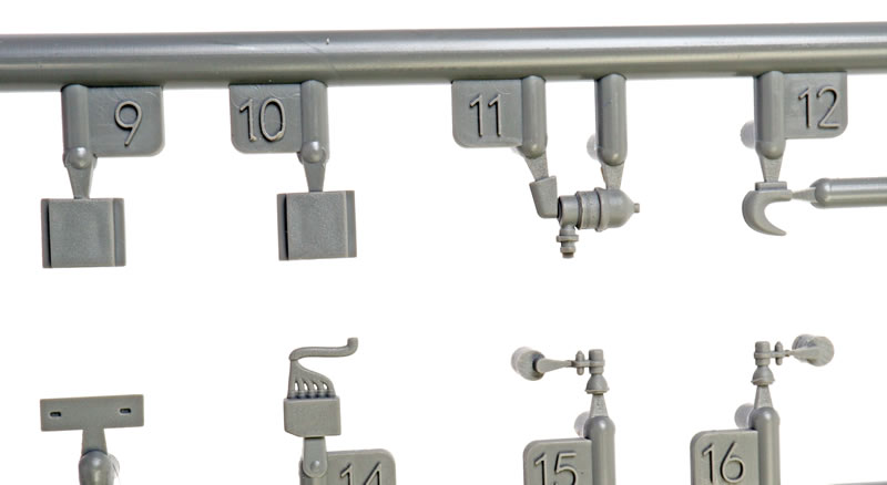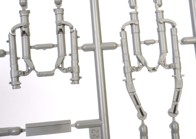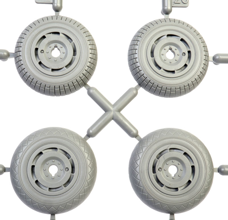 The wheels and tyres are moulded in halves. They are not weighted, but the rear hubs are keyed to the main legs. A choice of diamond and block tread patterns are provided, and hub detail is deep and convincing.