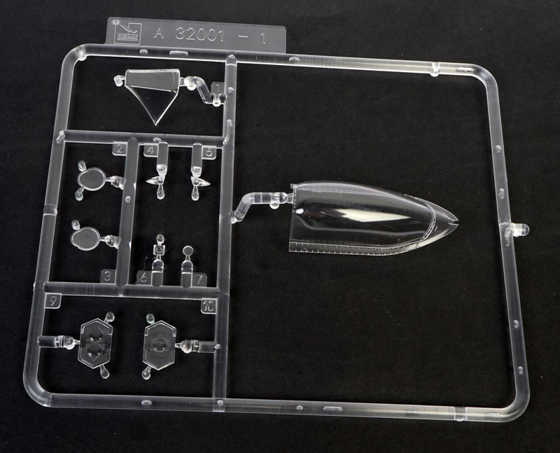 Clear parts are thin and fee from distortion. The windscreen and canopy are separate pieces to it may be posed open or closed.