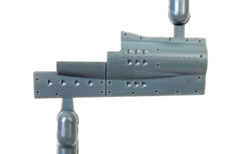 Once you subtract the unused pieces and the 66 items on the ordnance sprue, the unarmed airframe boils down to a very reasonable 129 grey plastic parts.