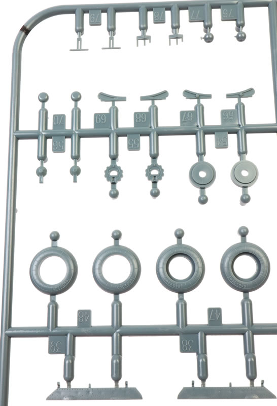 203 grey plastic parts (eight unused), 20 clear parts (four unused), a colour photo-etched fret, self-adhesive die-cut masks and markings for six aircraft.. |