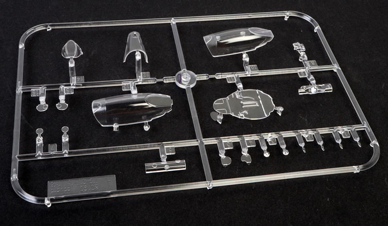 The clear parts are thin, sharp and free from distortion. The windscreen is separate, allowing the canopy to be posed either open or closed.