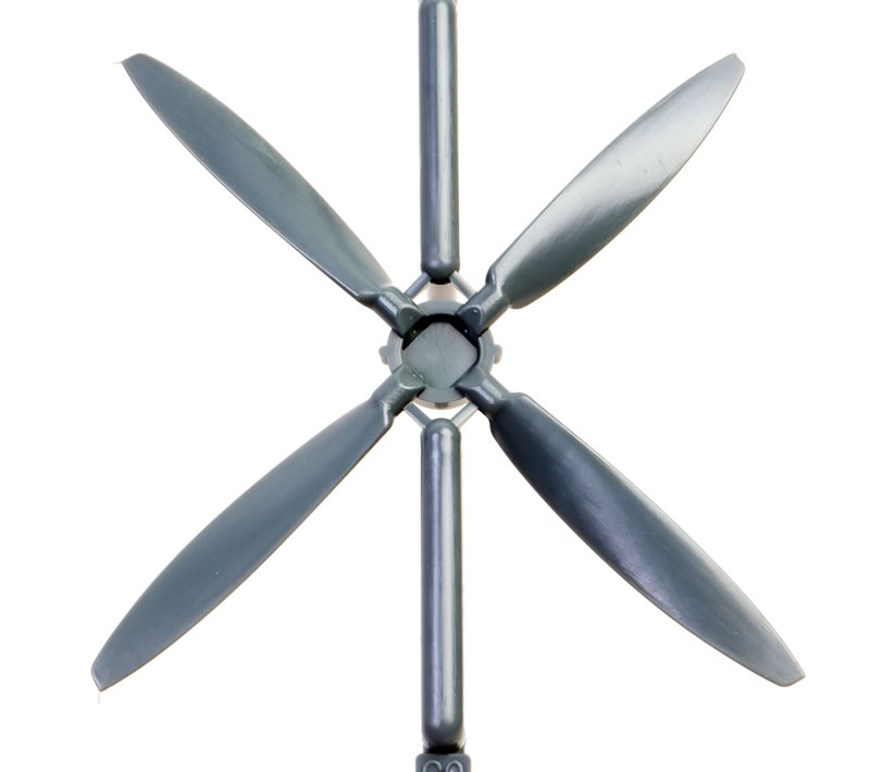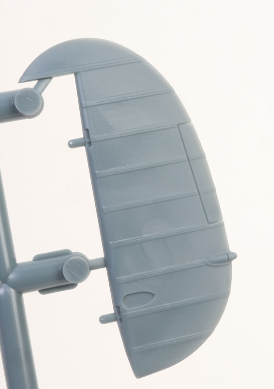 The outboard narrow gun bulges are moulded direct to the top wing halves, and the appropriate shell ejector ports are similarly moulded in place on the bottom of the wings.