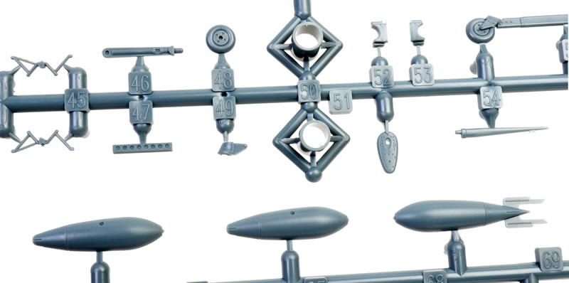 Options applicable to this version are bombs and either pointed or rounded rudder. A blank for the cannon fairing is also supplied for the Danish marking option.