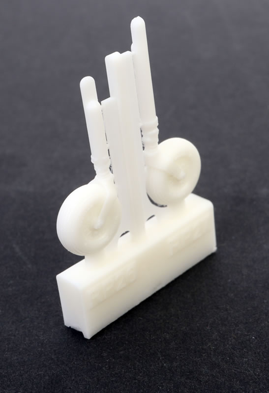 Long and short one-piece tail-wheel struts are supplied in white resin, presumably reinforced.