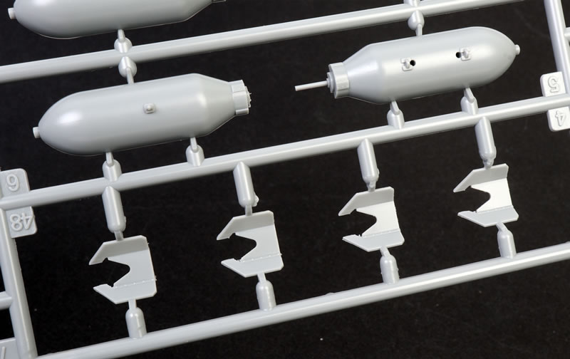 The mid-fuselage interior and bomb bay are fabulous. Bulkheads and inner sidewall sections are included. Four 500lb bombs are also offered. The bomb bay doors may be posed open or closed. Life raft compartment and radio boxes complete the detail package. The only downside is that you will see very little of the interior once the fuselage is closed up. Take lots of photos!