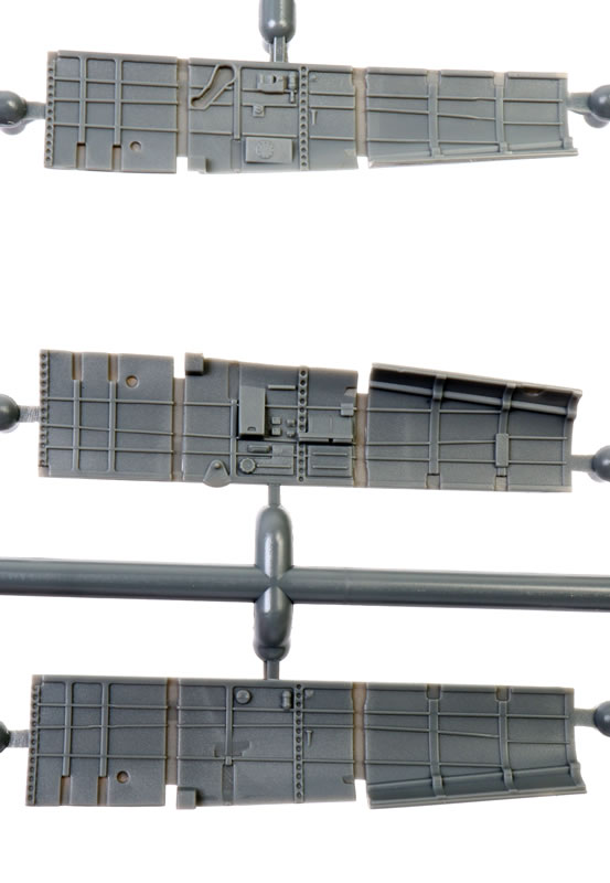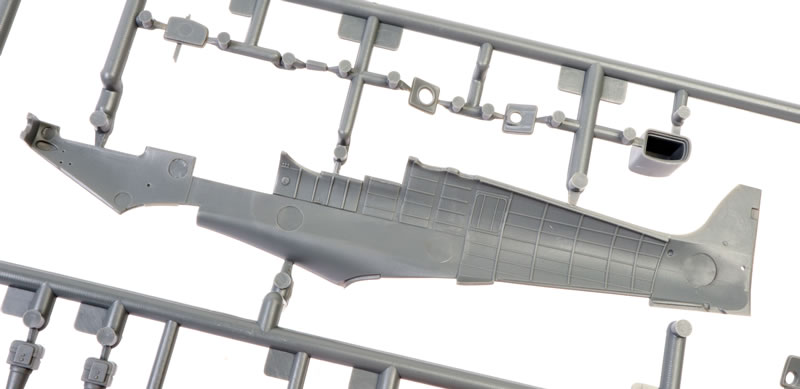 The kit is broken down conventionally. The fuselage is full-length with the upper and lower cowling parts, radio access hatch and rear upper cowling being inserts to the main fuselage halves.