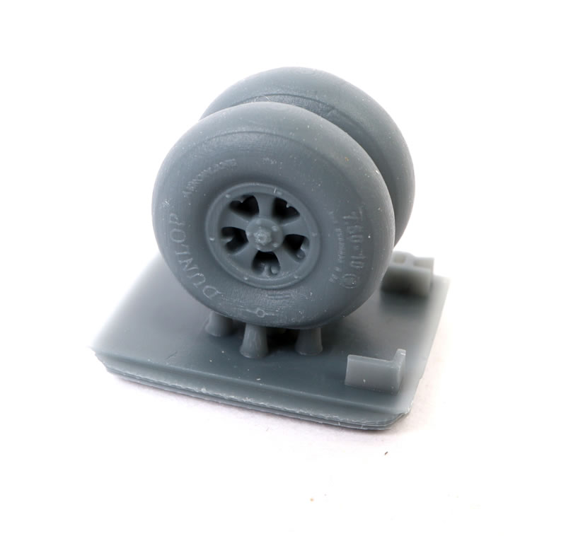 A pair of 3d printed seamless main wheels are also included. These feature lovely detail on the hubs, subtle bulgings and flattening and raised lettering on the sidewalls.