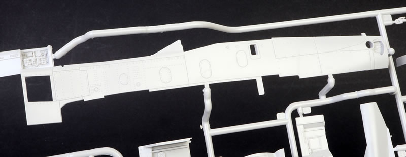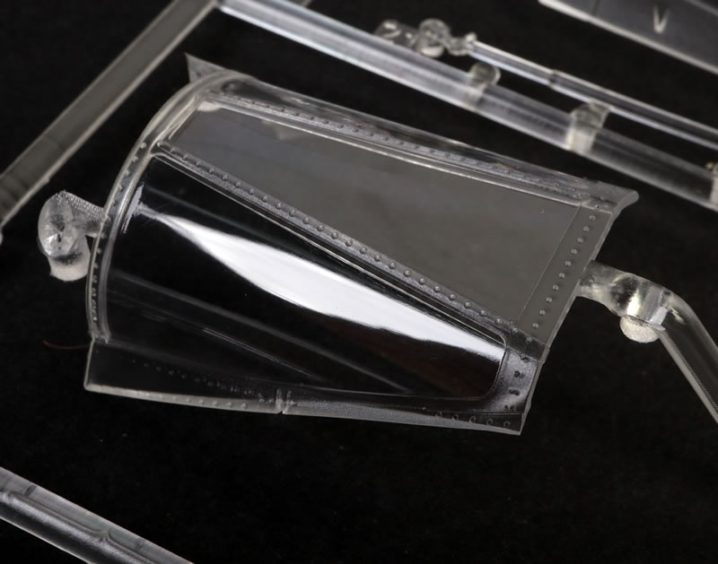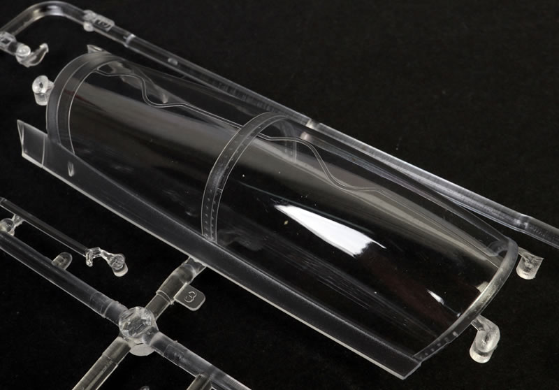 Clear parts are thin and free from distortion. The big two-piece canopy may be posed open or closed. Detonation cord is moulded onto the inside of the canopy - nice touch. A support strut is supplied for the open canopy option.