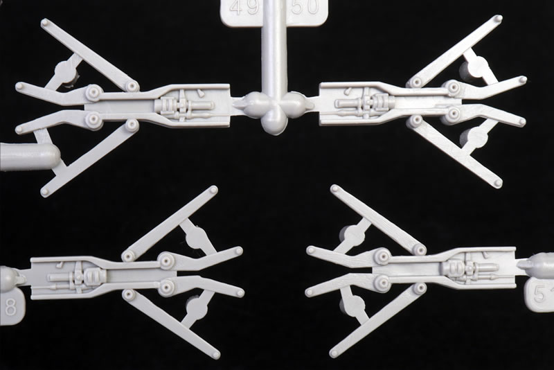 Undercarriage bays are fully boxed in with delicate ribbing and hydraulic detail. The undercarriage legs also feature nice hydraulic line detail.