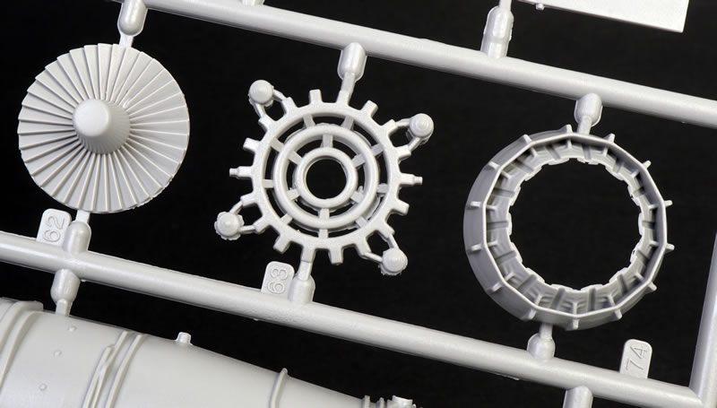 537 light grey plastic parts (136 parts not used); 24 clear parts (one part not used); 61 photo-etched parts on one fret; six flexible vinyl parts; two self-adhesive die-cut Kabuki masks; two 1.4 x 8mm screws; Cartograf decals; 56 page instruction book. |