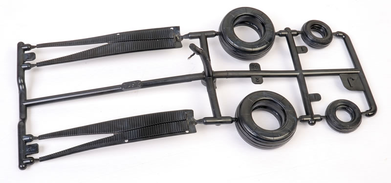 The wheel hubs and tyres are moulded separately. Italeri offers the option of flexible vinyl or solid plastic tyres. The plastic tyres are bulged and flattened. That’s the way I will be going.