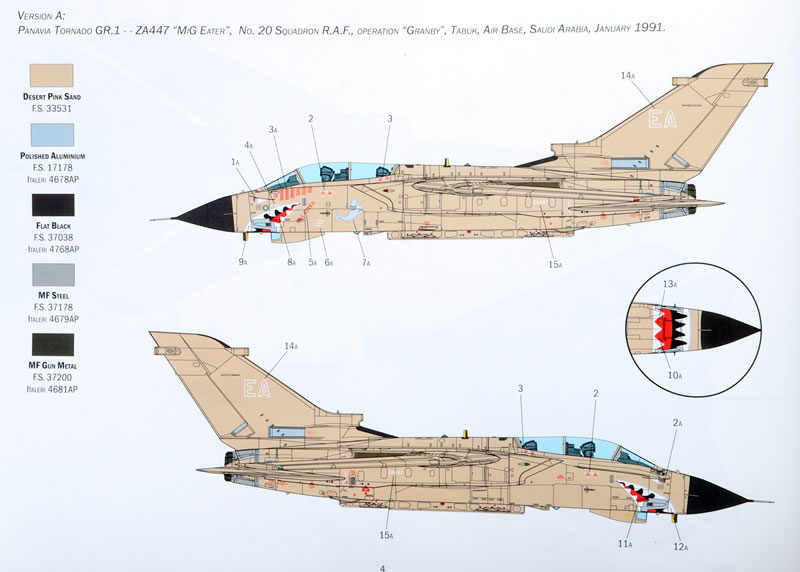 The sight of the RAF’s Desert Pink Tornados skimming above the sands of Kuwait became one of the enduring images of the conflict. Italeri has not disappointed with their selection of subjects.