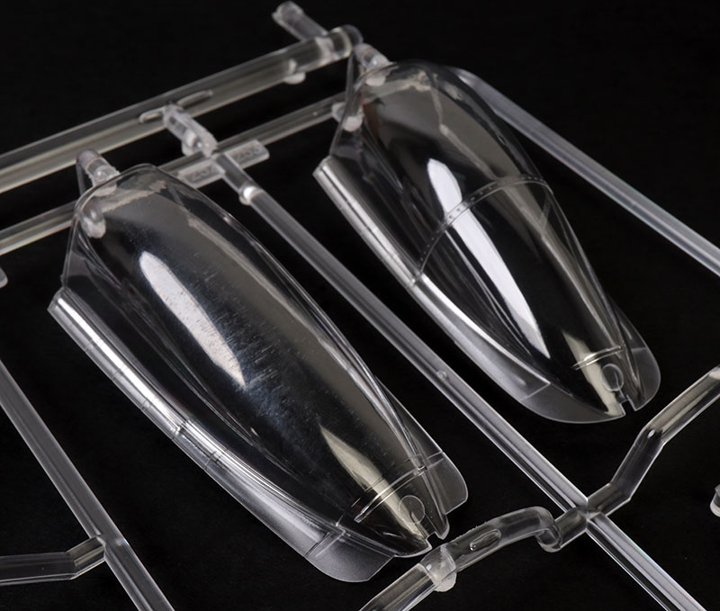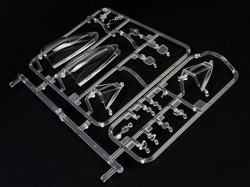 388 pieces moulded in dark grey plastic; 17 clear plastic parts; one colour photo-etched fret; self-adhesive die-cut masks for canopy and wheels; markings for five nicely varied options, marking guide; 48 page instructions. |