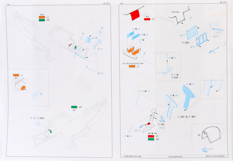 The use of the photo-etched frets, or the 3d printed SPACE package, will result in a noticeably better detailed cockpit, especially for the instrument panel and harness straps.