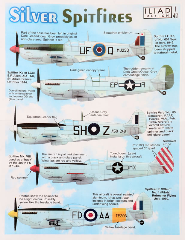 In summary, Iliad Design’s Silver Spitfires is an imaginative and well-executed decal sheet that combines unusual subject matter with high production standards. For anyone looking to build something just a little different from the usual camouflaged Spitfire, this set delivers both inspiration and quality in equal measure.