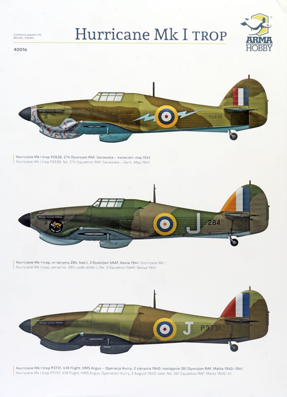Arma Hobby continues this tradition with this new 1/48 scale Hawker Hurricane Mk.I Trop.