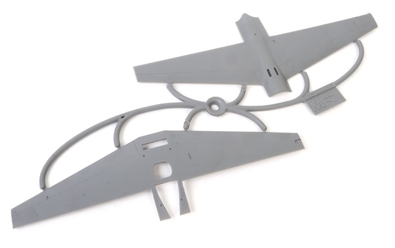 The wings are supplied as separate port and starboard upper and lower sections. These four parts are supported and aligned by a substantial nine-part wing spar assembly. Separate ram-air intakes and louvres are also included.